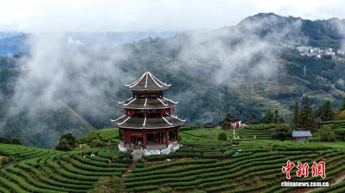 图为布央村茶园云雾旋绕景如绘。龚普康 摄